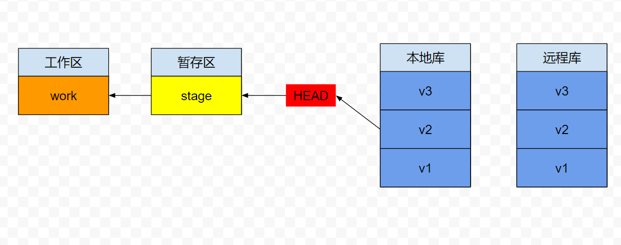 git reset --hard v2 v2指向HEAD,HEAD覆盖暂存区,暂存区覆盖工作区
